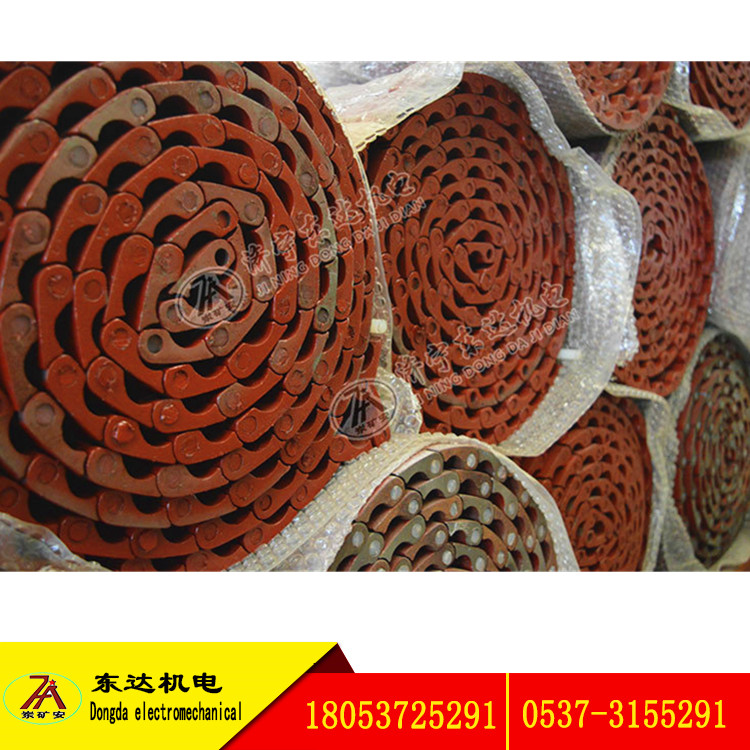 16锰钢铸造甲片甲带选用轴销串1010高耐磨增强尼龙穿条 新型甲片组成。18053725291新型甲片用优质16锰钢铸造,此材料具有良好的耐磨性、韧性,既有高强抗砸的硬度,也有缓冲效果好的韧性,能有效吸收煤对设备产生的冲击力;增强尼龙1010穿条具有良好的耐磨性和自润滑性,大大提高了甲带的耐冲击性,当甲带受到物料剧烈冲击时,首先其自身结构形式就将冲击力由冲击点甲片经甲带尼龙穿条向四周扩散,其次,其下的胶带自身变形也吸收一定的冲击载荷;并同时将剩余的冲击载荷传导给缓冲托辊及缓冲托辊座进行吸收,这样就很好的提高了给煤机的抗冲击力。串联甲带的甲片分为两种,精巧的T型带扣咬合连接,缝隙小,有效防止了粉煤的漏煤现象,增加了设备的使用寿命。
